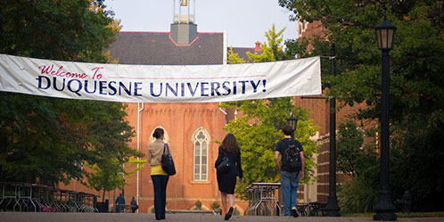 | Three Students walking to the premise of Duquesene University |